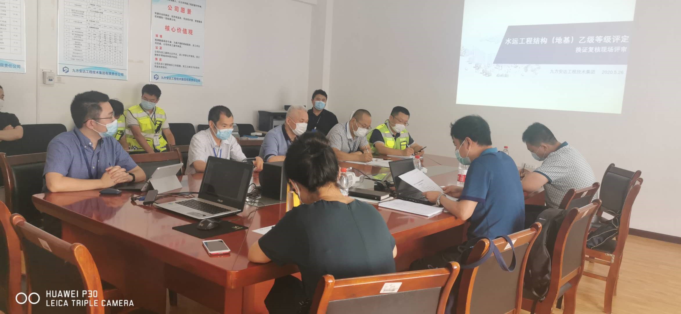 2020年5月26至27日,公路水運工程試驗檢測機構等級評定/換證復核評審組蒞臨九方安達工程技術集團有限責任公司(下稱九方檢測),開展水運工程結構(地基)乙級等級評定/換證復核的現場評審,期間湖北省交通廳市場處和質監(jiān)局等有關領導出席本次評審。