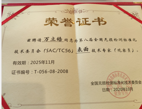 九方檢測萬立皓被標(biāo)委會聘為表面檢測技術(shù)組專家