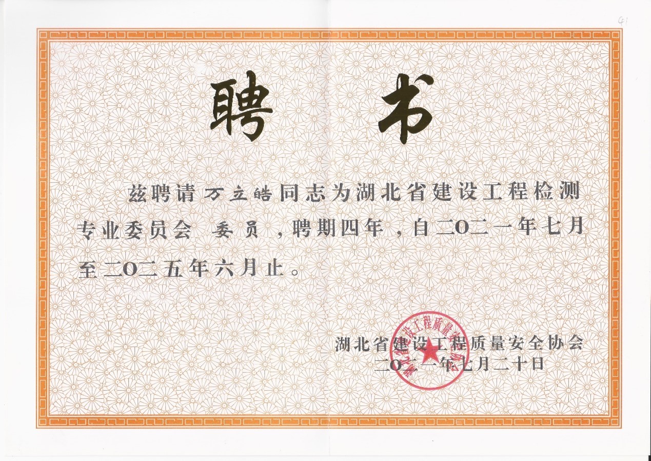 2021年7月20日,湖北省建設工程質量安全協(xié)會根據工作需要和《湖北省建設工程檢測專業(yè)委員會章程》(試行)要求,經開專題會研討和網上公示,確定第二屆湖北省建設工程檢測專業(yè)委員會組成人員。