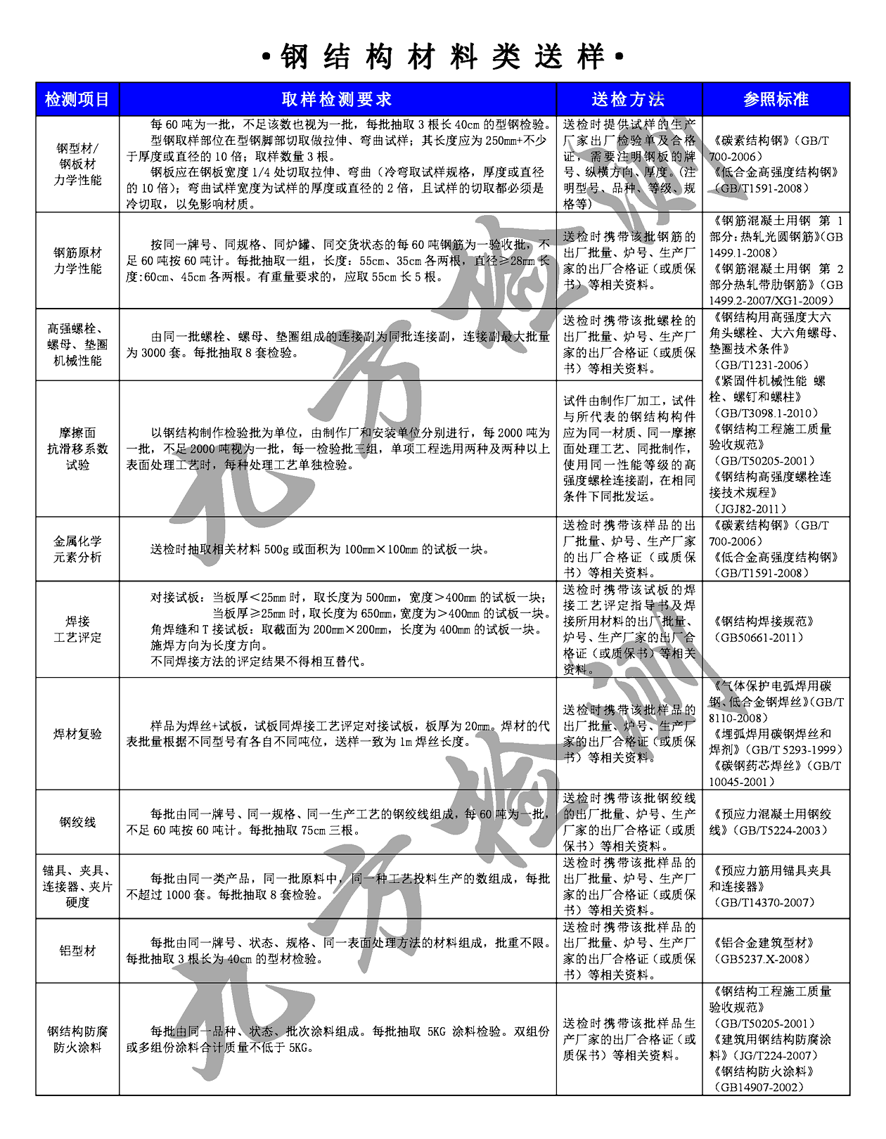 由于鋼結(jié)構(gòu)檢測(cè)包含各類項(xiàng)目較多,各種參照標(biāo)準(zhǔn)復(fù)雜,對(duì)各類檢測(cè)項(xiàng)目的取樣檢測(cè)要求以及送檢方法也都不盡相同,今天,為大家?guī)碛删欧桨策_(dá)集團(tuán)檢測(cè)二室的萬立皓主任整理的鋼結(jié)構(gòu)材料送樣檢測(cè)指南。
