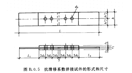 抗滑移系數(shù)試驗(yàn)應(yīng)采用雙摩擦面的二栓拼接的拉力試件(圖 B.0.5)。