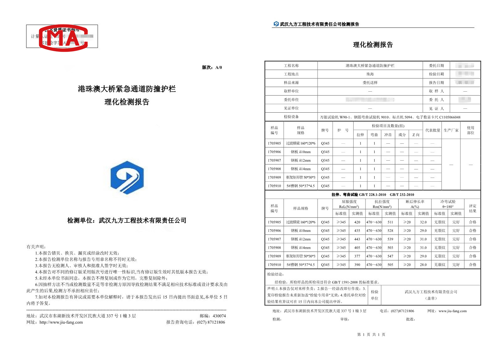 在港珠澳大橋的修建工程中,我們九方檢測(cè)參與了該項(xiàng)目的多個(gè)檢測(cè)工作,一方面,公司在項(xiàng)目正式動(dòng)工以前,參與了前期工程勘察的物探工作,為建設(shè)方提供了施工區(qū)域內(nèi)的地層巖性和地質(zhì)構(gòu)造的信息。項(xiàng)目后期,我們對(duì)港珠澳大橋的防撞護(hù)欄進(jìn)行了材料檢測(cè),出具了專(zhuān)業(yè)的理化檢測(cè)報(bào)告,為整個(gè)項(xiàng)目的配套設(shè)施保駕護(hù)航。