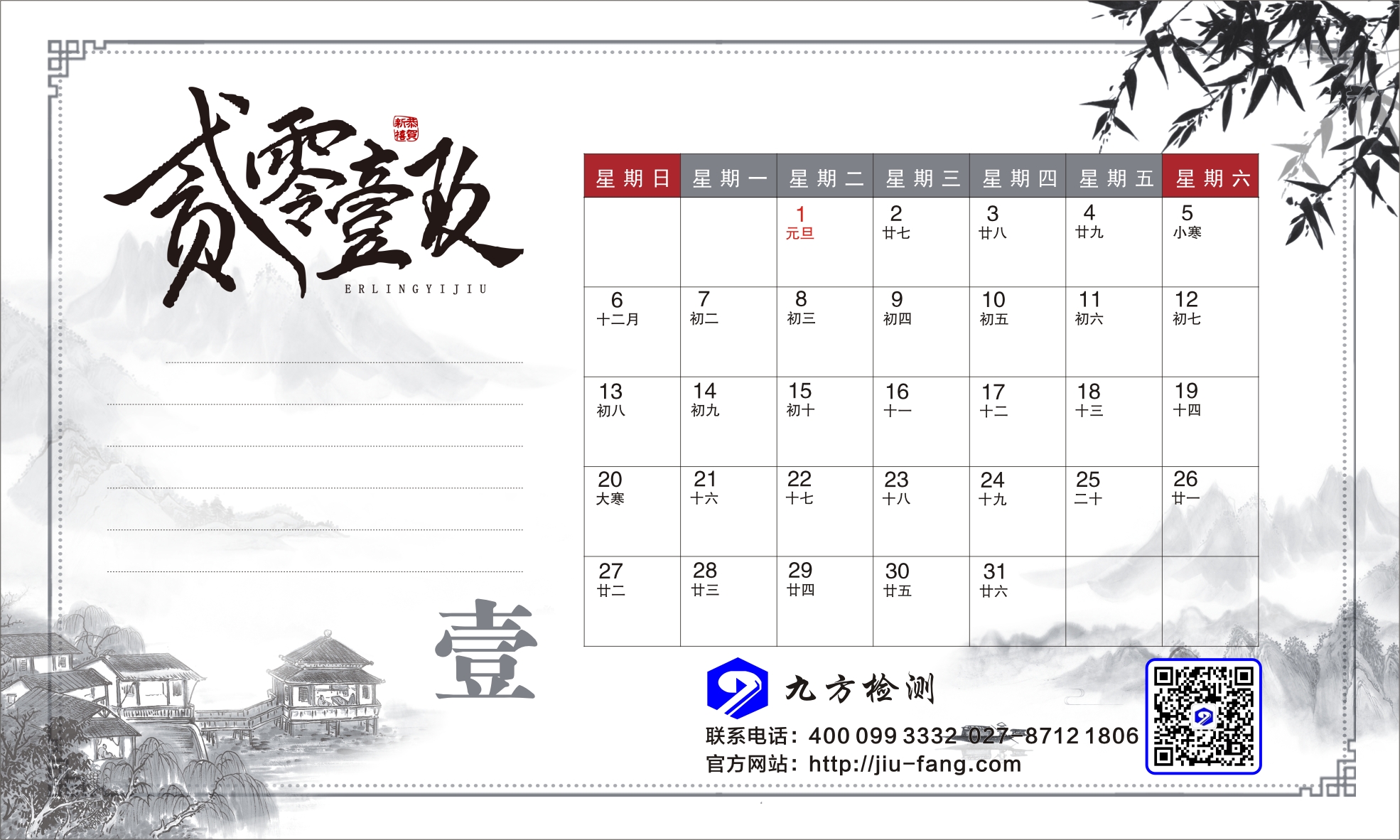 九方檢測臺(tái)歷封底