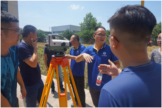 本次實(shí)操課程分為兩部分:主體結(jié)構(gòu)檢測(cè)及沉降觀測(cè)。由于參培學(xué)員較多,現(xiàn)場(chǎng)劃分為兩個(gè)小組,分上下午交叉進(jìn)行。時(shí)值盛夏,鄂州地區(qū)當(dāng)天近40度高溫卻并未能阻擋學(xué)員的熱情,省檢中心及九方檢測(cè)的專家們也無懼高溫,揮汗如雨為學(xué)員悉心展示設(shè)備和實(shí)操技巧。