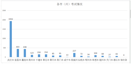 圖1:各市(州)考試情況(來源:鄂建質(zhì)安協(xié)〔2019〕41號文)